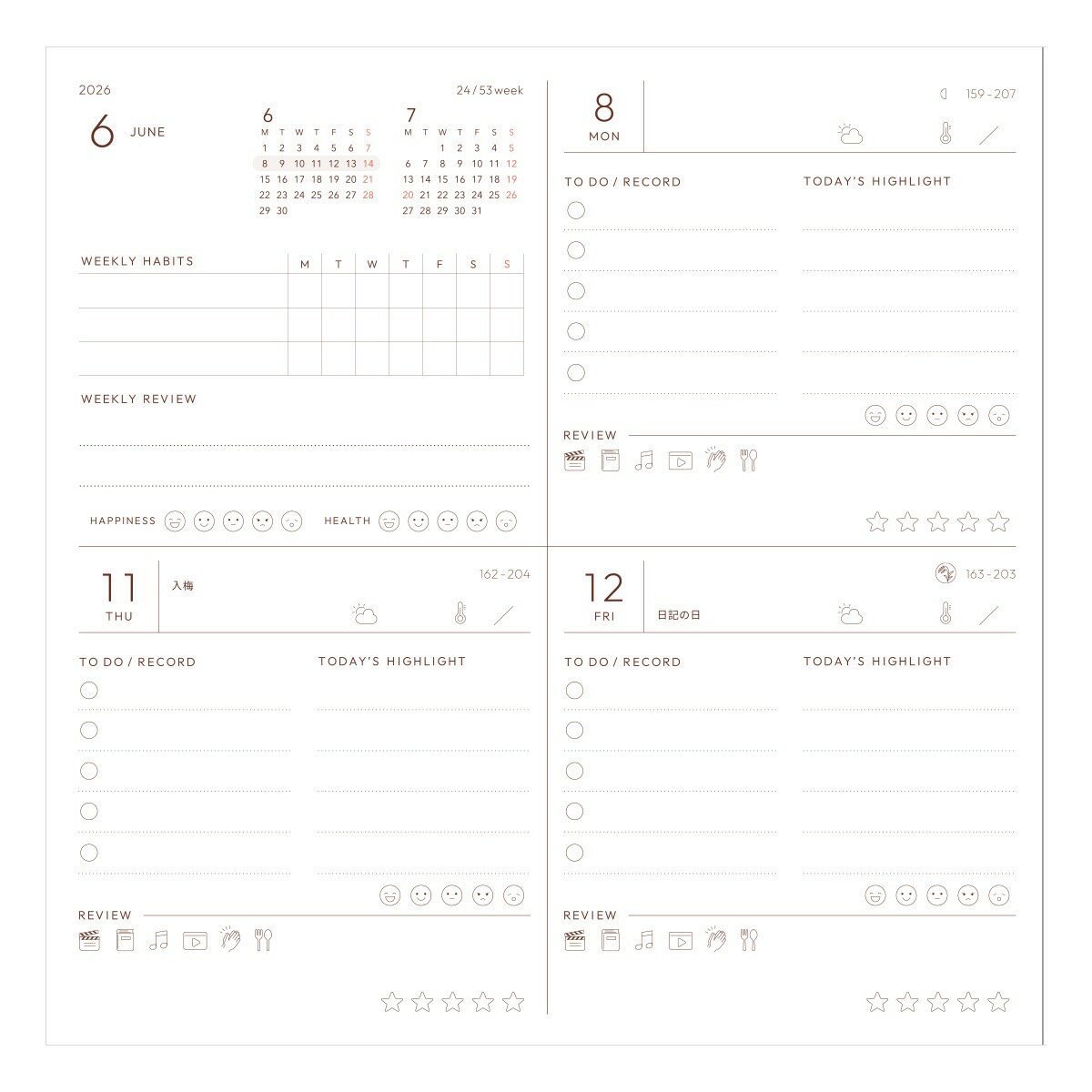 週間ページは横罫線入りで日々の日記やライフログに最適!!